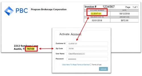 Your Customer ID and Zip Code are located on your most recent PBC invoice.