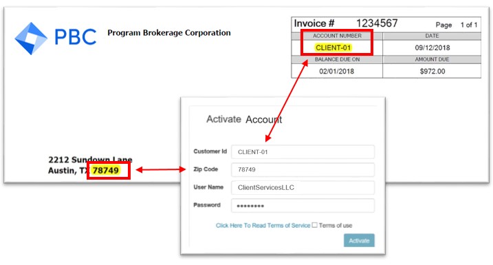Confirm that your Customer ID and Zip Code match your most recent PBC invoice.